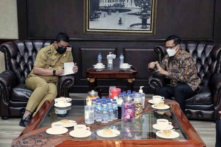 Medan, POL | Wali Kota Medan Muhammad Bobby Afif Nasution SE MM, menerima Audiensi Kepala Perwakilan Bank Indonesia Provinsi Sumut, Soekowardojo di Ruang Khusus Wali Kota, Balai Kota,Selasa (09/03/2021). Selain silaturahmi kunjungan ini juga mengajak Pemko Medan agar mengadopsi elektronifikasi transaksi.