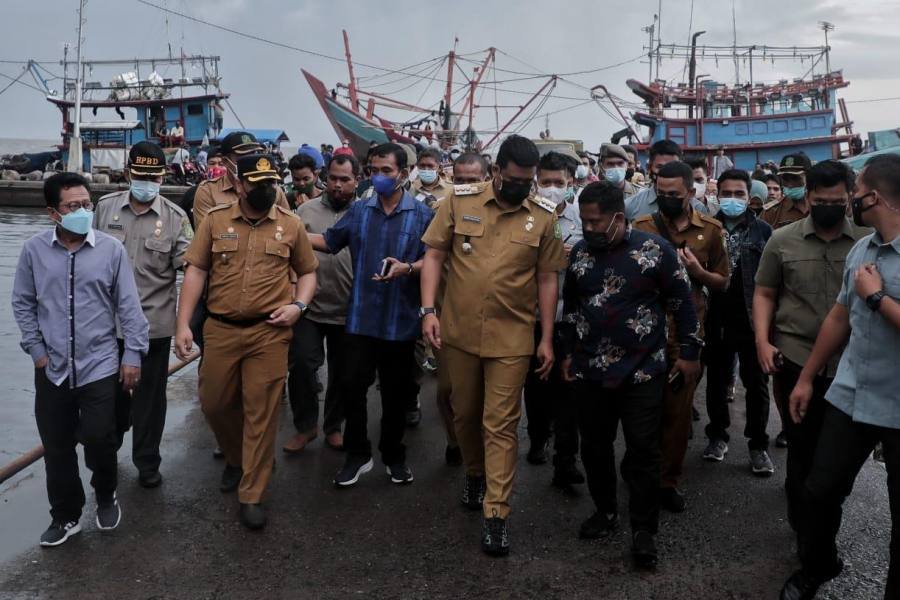Medan, POL | Wali Kota Medan Muhammad Bobby Afif Nasution SE MM berkunjung ke tempat pelelangan ikan Gabion, Belawan Selasa (13/4/2021), menindaklanjuti laporan masyarakat perihal aktifitas pelanggaran penangkapan ikan dengan pukat trawl di perairan Belawan.