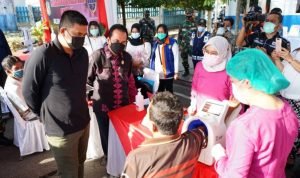 Medan, POL | Wali Kota Medan Muhammad Bobby Afif Nasution SE MM, meninjau pelaksanaan Vaksinasi Covid-19 kepada Pelaku Pengguna Angkutan (Supir) dan Pedagang di Kota Medan, Sabtu (27/02).