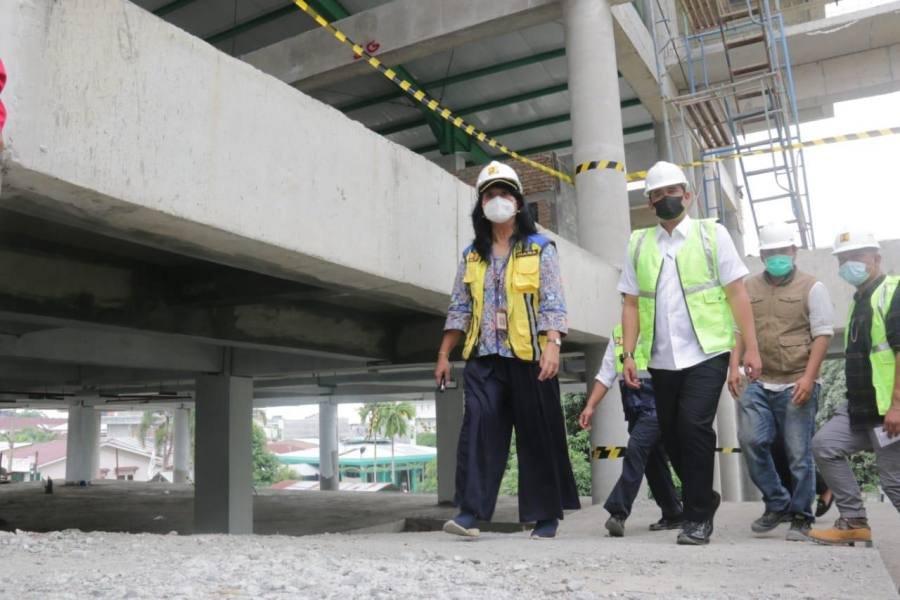 Medan, POL | Wali Kota Medan, Muhammad Bobby Afif Nasution,SE.,MM bersama Dirjen Cipta Karya Kementerian PUPR, Ir. Diana Kusumastuti,MT meninjau pembangunan Pasar Aksara baru yang berlokasi dijalan Mesjid Desa – Medan Estate, Rabu (19/5/2021). Pembangunan Pasar Aksara baru ini guna menggantikan Pasar Aksara lama yang terletak di jalan HM Yamin.
