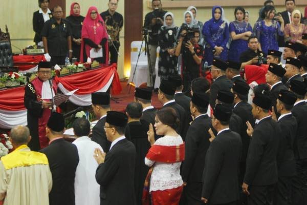 Medan, POL | Rapat Paripurna DPRD Kota Medan dalam rangka Pengucapan Sumpah/Janji Anggota DPRD Medan Masa Jabatan 2019-2024 berlangsung penuh khidmat di Gedung DPRD Medan, Senin (16/9). Ketua Pengadilan Negeri (PN) Medan Kelas IA Khusus Dr Djaniko M H Girsang SH MH yang mengambil sumpah/janji 50 wakil rakyat yang akan bertugas di Gedung DPRD Medan tersebut.