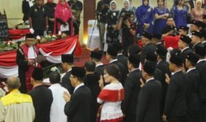 Medan, POL | Rapat Paripurna DPRD Kota Medan dalam rangka Pengucapan Sumpah/Janji Anggota DPRD Medan Masa Jabatan 2019-2024 berlangsung penuh khidmat di Gedung DPRD Medan, Senin (16/9). Ketua Pengadilan Negeri (PN) Medan Kelas IA Khusus Dr Djaniko M H Girsang SH MH yang mengambil sumpah/janji 50 wakil rakyat yang akan bertugas di Gedung DPRD Medan tersebut.