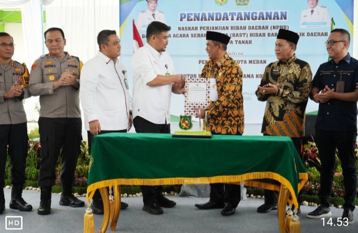 Sebelumnya Kepala Kantor Kementerian Agama Kota Medan Impun Siregar mengucapkan terima kasihnya kepada Wali Kota Medan Bobby Nasution. Sebab, atas kepedulian beliau akhirnya dapat terlaksana penyerahan hibah berupa tanah milik Pemko Medan kepada Kementerian Agama Kota Medan.