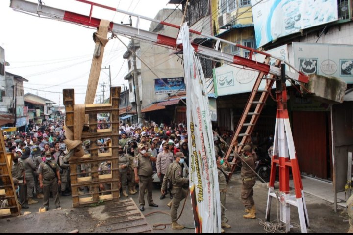 Medan, POL | Guna menegakkan peraturan sekaligus menindaklanjuti aspirasi warga, Pemko Medan melalui Satuan Polisi Pamong Praja (Satpol PP) bersama aparat TNI/Polri membongkar paksa portal Jalan Pancing 1 Kelurahan Besar, Kecamatan Medan Labuhan, Selasa (7/6/2022).