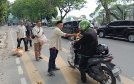 Medan, POL | Ketua Koordinator Wartawan DPRD Medan, Said Ilham Asegaf SH, didampingi Sekretaris Irwan Sahat Manalu, Bendahara Amsari, serta jajaran pembina, pengurus, dan anggota, membagikan takjil kepada masyarakat yang melintas di depan Gedung DPRD Medan, Jalan Imam Bonjol, Rabu (18/3/2026) petang.