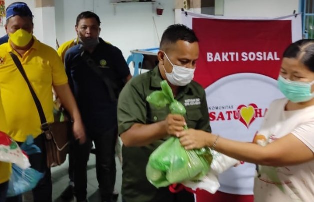 Selain melakukan penyemprotan cairan Disenfektan Eko Enzyim, Koordinator Unit DPRD Kota Medan bersama Komunitas Satu Hati memberikan bantuan sembako kepada masyarakat di Kecamatan Medan Sunggal sebanyak 1.100 sembako.