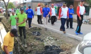 Medan – perjuanganonline | Wakil Wali Kota Medan Ir H Akhyar Nasutuion Msi bersama Kapolrestabes Medan Kombes Pol Dadang Hartanto ikut gotong royong bersama dengan para tokoh lintas agama, jamaah masjid maupun jemaat gereja beserta warga sekitar dan pelajar di Jalan Taduan, keluarahan Sidirejo, Kecamatan Medan Tembung, Sabtu (29/9). Selain mempererat jalinan tali silaturahmi dan kebersamaan, gotong royong yang digagas Forum Kerukunan Umat Beragama (FKUB) Medan juga untuk mendukung kebersihan lingkungan.