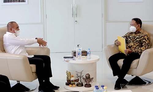 Jakarta, POL | Gubernur Sumatera Utara (Sumut) Edy Rahmayadi bertemu dengan Menteri Pemuda dan Olahraga (Menpora) Republik Indonesia Zainudin Amali di Kantor Kementerian Pemuda dan Olahraga (Kemenpora), Jalan Gerbang Pemuda, Jakarta, Kamis (10/2/2022). Edy Rahmayadi melaporkan perkembangan terkini persiapan Pekan Olahraga Nasional (PON) 2024 dan tentang keolahragaan di Sumut.