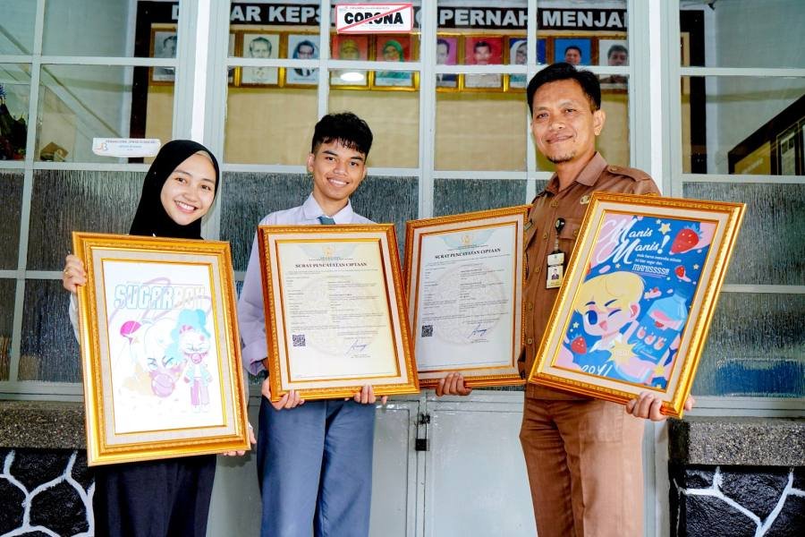 Bandung, POL – Kabar membanggakan datang dari siswa SLBN Cicendo, Kota Bandung. Seni gambar “Sugar Boy” dan “Manis” karya Muhammad Attalah Rasikhah, siswa kelas XI SLBN Cicendo ini mendapatkan 2 Sertifikat Hak Atas Kekayaan Intelektual (HAKI) dari Kanwil Kemenkumham Jawa Barat.