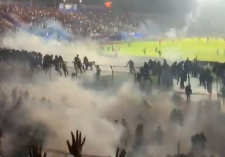 Tembakan gas air mata pun dilontarkan untuk mengurai massa yang turun ke lapangan. Namun, lontaran gas air mata tersebut membuat supporter di lapangan kocar kacir.