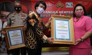 Medan, POL | Kapolda Sumut Irjen Pol Drs. Martuani Sormin,M.Si dan Ketua Bhayangkari Daerah Sumut Ny Risma Martuani Sormin menerima penghargaan Kak Seto Award 2020 dan Rekor Muri.