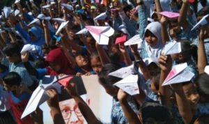 Solo, POL | Kepergian Almarhum Bacharuddin Jusuf Habibie, sangat dirasakan hingga ke pelosok negeri, doa untuk Almarhum pun terus mengalir,di Solo, Jawa Tengah. Pelajar dan guru menggelar doa bersama dan menerbangkan ratusan pesawat kertas sebagai wujud terima kasih untuk Habibie.