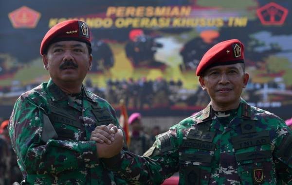 Jakarta, POL | Panglima TNI Marsekal Hadi Tjahjanto meresmikan Komando Operasi Khusus (Koopssus) TNI. Peresmian ini digelar di Lapangan Koopssus TNI, Mabes TNI, Cilangkap, Jakarta Timur.