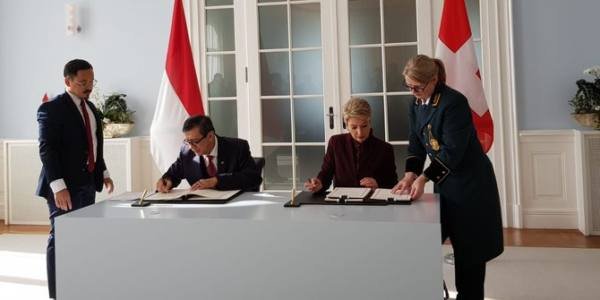 Jakarta, POL | Menteri Hukum dan Hak Asasi Manusia Yasonna Hamonangan Laoly menandatangani perjanjian bantuan hukum timbal balik (Mutual Legal Assistance-MLA) dengan Menteri Kehakiman Swiss Karin Keller-Sutter di Bernerhof Bern, Swiss, Senin (4/2). Perjanjian diteken setelah melalui dua kali putaran perundingan, yakni di Bali dan di Bern, Swiss.