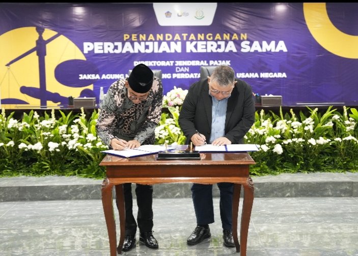 Jakarta, POL | Direktur Jenderal Pajak Suryo Utomo bersama dengan Jaksa Agung Muda Perdata dan Tata Usaha Negara R. Narendra Jatna menandatangani perjanjian kerja sama (PKS) antara Direktorat Jenderal Pajak (DJP) dan Kejaksaan Republik Indonesia.