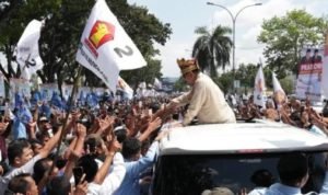 Pekanbaru, POL | Calon Presiden nomor urut 02 Prabowo Subianto mengatakan, dirinya tidak percaya pada hasil survei elektabilitas terkait Pilpres yang dirilis sejumlah lembaga. Hal itu disampaikan saat dia menyapa masyarakat Riau di Gelanggang Remaja Pekanbaru, Riau, Rabu (13/3).