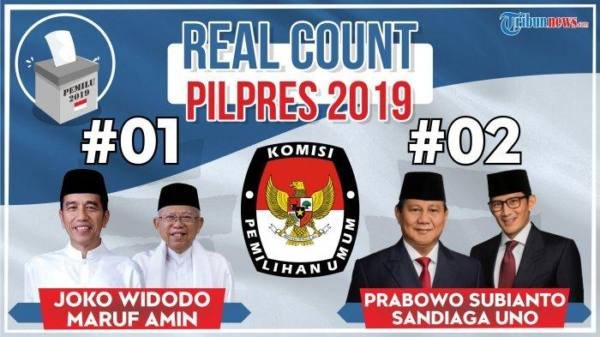 Real Count KPU 26%: Jokowi-Amin 55,39% Prabowo-Sandi 44,61%