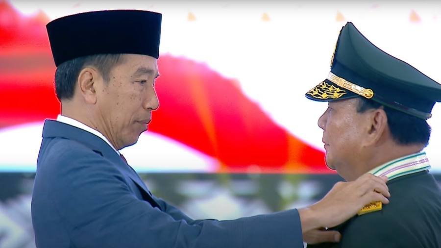 Setelah itu, Jokowi menyematkan bintang empat ke kedua bahu Prabowo. Keduanya dilanjut berjabat tangan. Prabowo lalu memberikan sikap hormat kepada Jokowi.