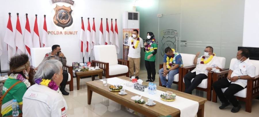 Medan, POL | Kapolda Sumut, Irjen Pol RZ Panca Putra Simanjuntak, menyambut kedatangan Kontingen Atlet Wushu PON 2021 dari Papua di Mapolda Sumatera Utara, Kamis (7/10).