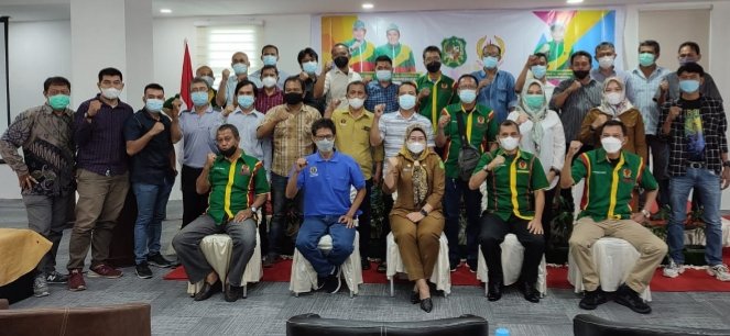 Medan, POL | Komite Olahraga Nasional Indonesia (KONI) Kota Medan menggelar pelatihan manajemen informasi keolahragaan kepada wartawan yang sehari-hari meliput kegiatan olahraga, Selasa (28/9.2021), di Hotel Grand Kanaya Medan,