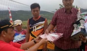 Tapsel, POL | Sekretaris Daerah (Sekda) Tapanuli Selatan (Tapsel) Parulian Nasution menyerahkan piala pada club Meteor yang keluar sebagai juara pada turnamen bola voli dalam rangka menyemarakkan HUT Kemerdekaan RI Ke- 74 yang digelar Dinas Pariwisata dan Olahraga Tapsel dilapangan bola Volly Pasar Belakang, Sipirok , Jumat (9/8/2019).