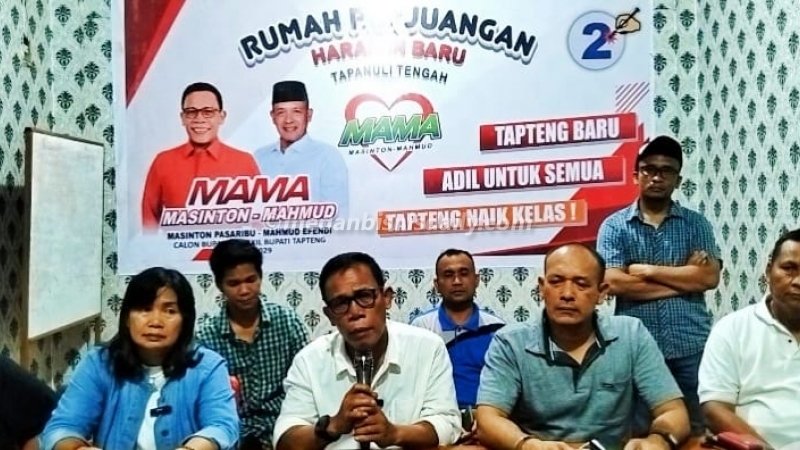 Tapteng, POL | Ketua Tim Kampanye Paslon Masinton Pasaribu-Mahmud Effendi Lubis (MAMA) nomor urut 02, Sarma Hutajulu mengatakan, berdasar hasil sementara real count yang dibuat timnya, MAMA menang di 17 kecamatan, sedangkan 3 kecamatan lainnya dimenangkan pasangan nomor urut 1, Khairul Kiyedi Pasaribu-Darwin Sitompul (KEDAN).