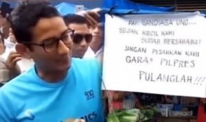 Penolakan Sandiaga di Sumatera Utara dinilai sebagai sebuah sandiwara. Hal itu menyusul viralnya video tim media Sandiaga mencegah pendukungnya menurunkan poster penolakan oleh penjual di pasar yang didatangi. Sehingga, muncul tagar SandiwaraUno di Twitter.(BS/P03)