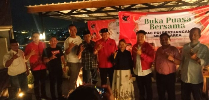 Medan, POL | PAC PDI Perjuangan Medan Area menggelar kegiatan berbuka puasa bersama dengan seluruh pengurus dan ranting yang dirangkai dengan pembagian takjil kepada para pengendara di Hotel TravelBiz Jalan Sutrisno Medan, Senin (24/3/2025).