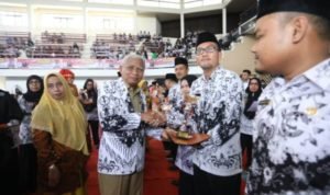Sebelumnya Ketua Panitia Pelaksana Dian Rayanta SPd, MSi dalam laporannya menyampaikan bahwa peringatan hari guru tahun ini mengambil tema “Peran Strategis Guru dalam mewujudkan Sumber Daya Manusia Indonesia Unggul”.