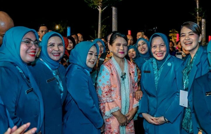 Solo, POL | Ketua TP PKK Kota Medan Kahiyang Ayu M Bobby Afif Nasution sekaligus Ketua Dekranasda Kota Medan menghadiri Puncak Peringatan Hari Kesatuan Gerak (HKG) PKK ke-52 dan Jambore Nasional Kader PKK tahun 2024 di Taman Balekambang Solo, Kamis (16/5/2024) malam.