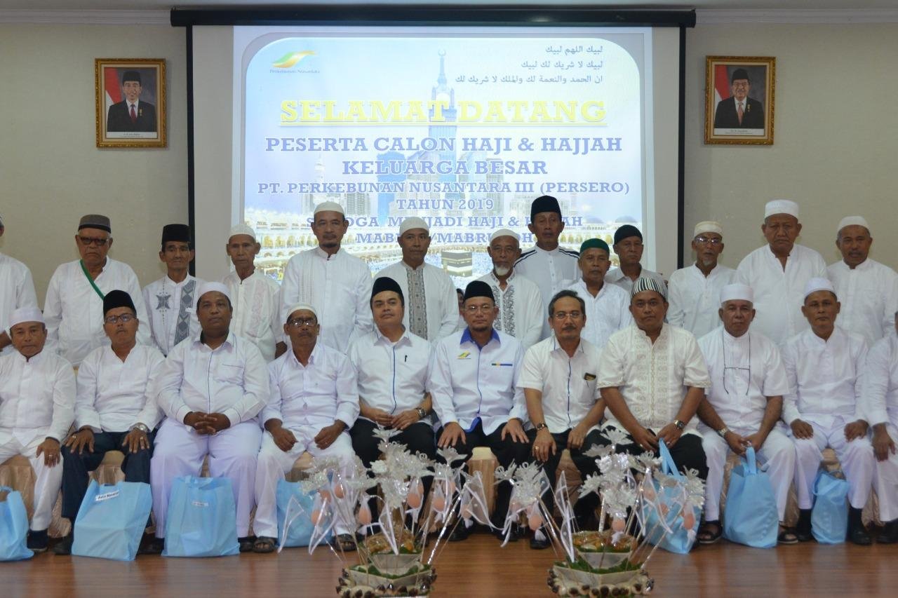 Medan, POL | PT. Perkebunan Nusantara III (Persero) menggelar doa bersama pemberangkatan calon haji keluarga besar PTPN III tahun 2019/1440 Hijriah di Aula Eulegeunesis, Jalan Sei Batanghari No. 2 Medan, Selasa (9/7/2019).