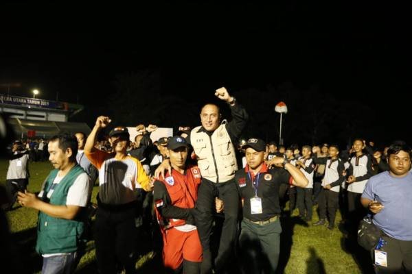 Serdangbedagai, POL | Gubernur Sumatera Utara (Gubsu) Edy Rahmayadi dinobatkan sebagai Bapak Peduli Kemanusiaan dan Kebencanaan Provinsi Sumatera Utara oleh peserta Jambore Daerah Kesiapsiagaan Bencana Daerah Provinsi Sumut 2019, Kamis malam (24/10/2019), di Kecamatan Sipispis, Kabupaten Serdangbedagai.