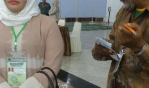“Saya sangat terharu dan bergetar hati saya, Tanpa terasa menetes air mata saya, ketika mendengarkan lantunan terjemahan ucapan Talbiah yang disampaikan oleh Ibu hajjah tersebut ” katanya