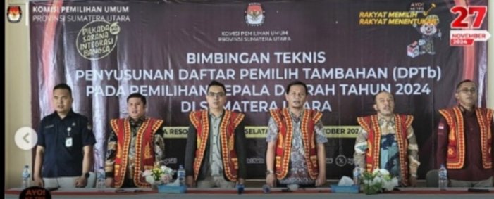 Nias Selatan, POL | KPU Provinsi Sumatera Utara menyelenggarakan bimbingan teknis (bimtek) terkait penyusunan Daftar Pemilih Tambahan (DPTb) untuk Pilkada 2024 pada 20-21 Oktober 2024 di Baga Resort Hotel, Kabupaten Nias Selatan. Kegiatan ini bertujuan untuk meningkatkan ketepatan dan kualitas data pemilih tambahan dalam rangka menghadapi Pilkada Serentak yang akan dilaksanakan di Sumatera Utara.
