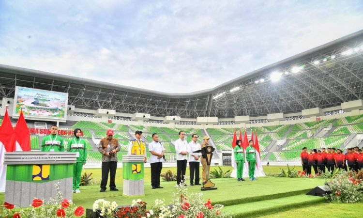 Deliserdang, POL | Presiden Republik Indonesia (RI) Joko Widodo (Jokowi) meresmikan Stadion Utama Sumatera Utara yang berlokasi di Desa Sena, Deliserdang, Sumatera Utara (Sumut). Presiden menilai bahwa Stadion Utama Sumatera Utara memiliki bangunan yang megah dan mewah.