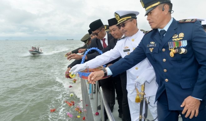 Tepat pukul 07.00 WIB, dari dermaga Pangkalan Utama TNI Angkatan Laut (Lantamal) I Belawan, rombongan menggunakan Kapal Angkatan Laut (KAL) Kaltarihu menuju perairan buoy 2 laut Belawan untuk melaksanakan upacara dan penaburan bunga.