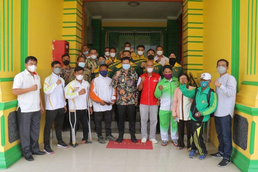 Pelepasan enam atlet PON dan lima atlet Papernas beserta para pelatih tersebut dilakukan di Kantor Bupati, Kamis (9/9/2021). Adapun para atlet PON yakni Dimas Setiya Darma (cabor angkat besi), Teguh Imam Santoso (cabor angkat berat), Sei Rahayu (cabor hoki), Muhammad Reza dan Muhammad Fitra Kurnia Barus (cabor sepak takraw) serta Muhammad Fardan Azmi Harahap (cabor sepak bola).