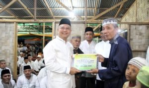 Pada Safari Subuh itu Wali Kota menyerahkan santunan kepada 100 anak yatim dan pemberian bantuan percepatan penyelesaian pembangunan sebesar Rp.40 juta kepada BKM Masjid Al Amin. (POL/W)