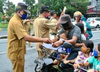 Jajaran Kecamatan Medan Sunggal Bagikan 1.000 Masker kepada Pengendara Bermotor