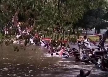 Medan, POL | Jembatan penyeberangan di Taman Cadika Medan ambruk dan membuat pengunjung nyebur ke danau. Jembatan ambruk karena kelebihan ...