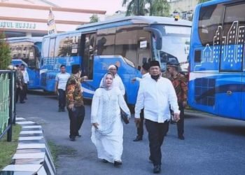 Medan, POL | Pelaksana Tugas (Plt) Bupati Langkat H.Syah Afandin SH melepas para Jamaah Calon Haji dari Asrama Haji Medan ...
