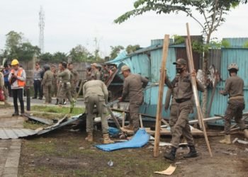selengkapnya>Medan, POL | Tim terpadu penertiban bangunan liar yang berada di atas aset tanah milik Pemko Medan di Jalan Jalan ...
