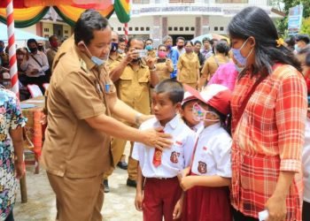 Samosir, POL | Bupati Samosir Drs. Rapidin Simbolon, MM dan Wakil Bupati Samosir Ir. Juang Sinaga menyerahkan bantuan sosial pendidikan ...