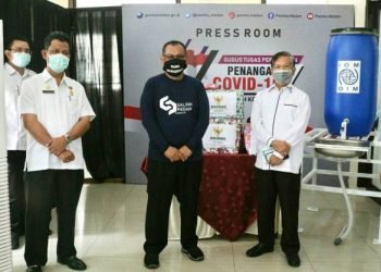 Medan, POL | Sebanyak 1000 masker non medis, 20 unit tempat cuci tangan dan hand soft yang berjumlah 100 buah, ...