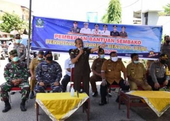 Kejari Sibolga Henri Nainggolan SH, MM selaku Wakil Ketua Gugus Kota Sibolga Hal tersebut penyaluran bantuan sosial tahap I (satu) ...