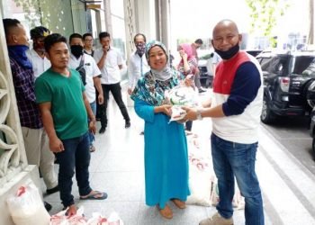 Rahmansyah Sibarani Berbagi Sembako dengan CS, Security dan Wartawan Unit DPRD Sumut