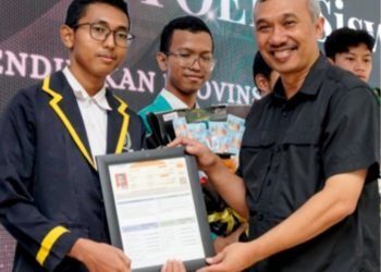 Bandung, POL | Plh. Kepala Dinas Pendidikan (Kadisdik) Jawa Barat (Jabar), Deden Saepul Hidayat menyerahkan sertifikat asesmen TOEIC (Test of ...