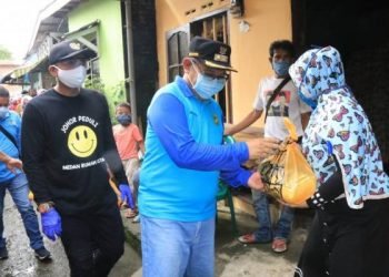 Akhyar Bersama PT Arrahman Berkah Wisata Bagikan Bahan Pokok Langsung ke Rumah Warga
