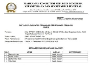 selengkapnya>Samosir, POL | Pasangan calon Bupati dan Wakil Bupati Samosir (petahana) Rapidin Simbolon dan Juang Sinaga, akhirnya memutuskan untuk menempuh ...