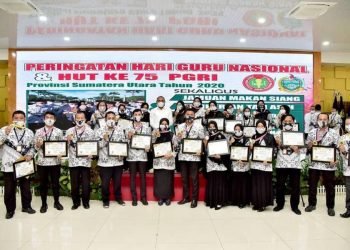 Gubsu Serahkan Tali Asih Kepada Para Pemenang Olympiade Gurulympics PGRI 2020